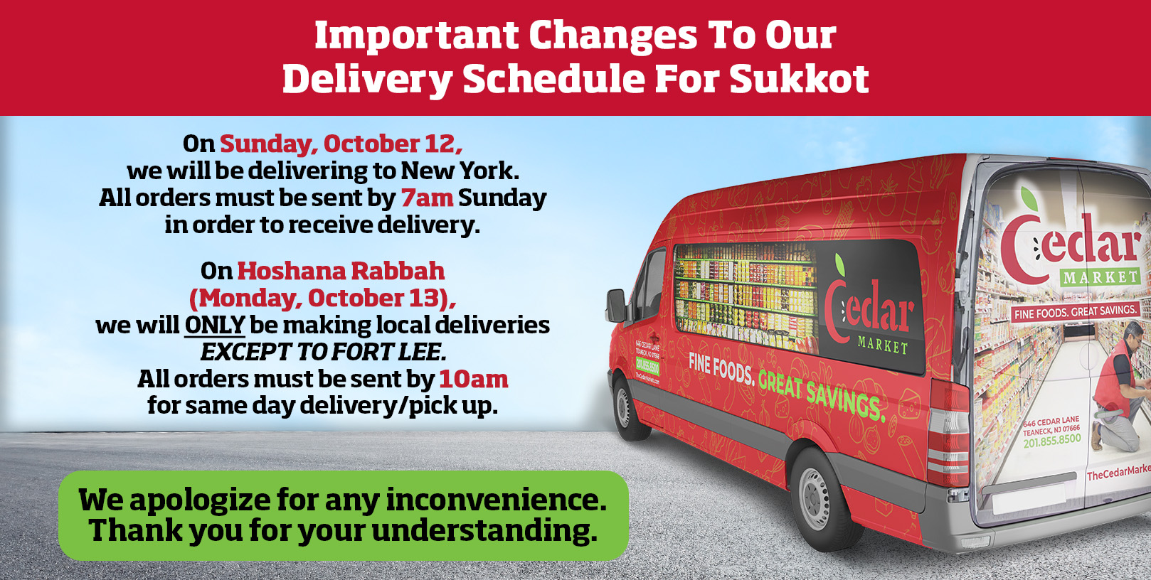 Simply place your order via email to orders@thecedarmarket.com. If you have questions, please email orders@thecedarmarket.com or call 201-855-8500.